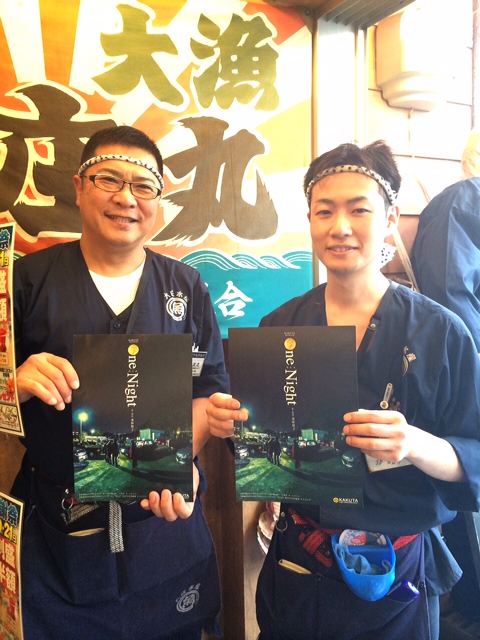 ひとよ初日まで待ったなし!南口商店街をくだっていった先にある居酒屋さん・とりとんくんにバラマキスライディング!赤提灯の温もりと共に快く出迎えてくださったホールチーフの木村さんとバラマキカラーも重なってテンションUP!