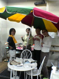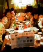 鏡前とは不思議なもの。 公演に入ると役者はスタンバイする場所ということで楽屋に入り浸ることになるわけですが、そこは劇場さんによって大きさも設備も色々です。今回は、一人一人にライトが三つもついて引き出しまである立派な鏡前があり、一同うきうき状態。 引き出しの使い方で盛り上がり、大きな鏡越しでの会話を楽しみ、楽屋の中はひっきりなしに黄色い声。 その中でも、一際黄色い声を上げっぱなしだったのが、私のネイバー、原嬢。 どの会話にも尽かさず、突っ込み、拾い、ぼけて、笑い、気がつけばその姿はどこにもあらず。 本番前の不安な気分も、忙しくてどんよりした気分も全て吹き飛ばしてくれました。 ありがとう、フキちゃん。 ★入団路回顧録・1996年2月 結成メンバー、2002年5月再入団★ 旗揚げメンバーでありつつも、途中退団。2002年にオーディションを経て再入団した、となんとも説明しにくい過去を持つ私ですが、旗揚げ時は演出なんぞもやっておりました。 その頃「口にするもの」に興味があった私は、劇団員にともかくせんべいやら、煙草をくわえさせていました。 その当時煙草を吸っていたのは、メンバーの半分くらいだったのですが、どうしても出演者全員が煙草をすうというシーンを作りたくて、すえなくてゴホゴホするメンバーにも毎日「稽古だから!」と強制的に煙草を吸わせていたのです。(ひどい!) そのシーンは芝居中でなかなかきれいに出来、評判もよかったのですが、終わってみれば劇団内は喫煙者だらけ。 今では、15人の劇団員のうち吸わないのは2名だけというスモーカー劇団になってしまいました。 禁煙ブームの世の中で、「喫煙席を!」と懇願してしまう私達をどうかお許し下さい。 |