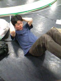★稽古場日記★ 今回は劇団員のみの公演なので、ふとした瞬間に“正月の親戚の集まり”みたいなたたずまいになってる自分に気づく。その時に演出助手のマノケン(イノセントスフィアの劇団員)がいてくれることで、僕はずいぶん自分に対する客観性を持ち直した。パソコン使いのマノケンは頭が良いし、色が白い。僕の真逆の性格?なので、ちょっと緊張するのかもしれないな。 昔バイトをやめる時、ドイツ人の友達マンフレッドが、 「僕はホモじゃないよ!ホモじゃないよ!」 と言って強く抱き締めてくれたが、僕もそうしたい気分さ。 さあ、明日で稽古も終わり、いろいろありがとなマノケン。 ![]() ★入団時回顧録・1996年7月入団★ 当時僕は21歳だった。桑原と同じ養成所(劇団員・原も同期)に通い、養成所帰りにKAKUTAの稽古場に寄った。そこで初めて田村とも出会い、音楽に合わせゆっくりと靴下を履く練習?をさせられた覚えがある。何の練習だったのかよく思い出せないので、明日田村に聞いてみよう。 初参加のKAKUTAですっげ〜緊張してた割りには、開演前舞台上スタンバイで寝てしまったり・・・。 田村ごめん、オレ寝てたわ。でも・・・桑原も寝てたらしいよ(笑)。その頃は主宰になるとは思ってもみなかった桑原は、本番中いろんなものにぶつかってたなあ。何かこぼしたり、引っ繰り返したり。 あの頃の自分らに問いかけてみたいよ、 「何でそんなことするの!?」 ![]() |