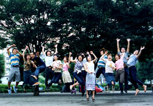 ★松田昌樹★ 相手役の横山が出番のない2場の間、外に走りに行ってる時、もし事故にあったらどうしようと一人でテンパッていました。 ☆ クーラーがきかず猛烈な暑さで何公演かを終え(お客様、すみませんでした)、その後空調問題は解決(逆に寒くなりました。お客様、またしてもすみませんで した)。しかし横山君は汗かいた状態が良かったようで、本番中学生服の衣装のままジョギングに。松田君はさぞかし不安だったことでしょう。 ★横山真二★ KAKUTA劇団員初芝居。本当に楽しかった。ただ本番中は最初に牛乳をかぶるため、心なしか 楽屋でみんなが近づいてくれなかったよーな。本当くさくてゴメン。 ☆だから本番中走りに行ったりするからだよ。汗と牛乳じゃそりゃ臭いって。 ★大枝佳織★ 今回は劇場の暑さで、初めて体験する異様なテンションの中での公演となった。お客さんでは「こりゃあ、たまらん」と思った方も多数いらっしゃると思いますが、私はそんな役者も観客も汗だくの公演を満喫してしまったわ。いいわ。夏は。ありがとうございます。(大枝) ☆大枝さんがTUBEファンなのがわかった気がします。 ★高山奈央子★本当に素敵で充実した一週間でした。唯一の気がかりは、初日に、汗のかき過ぎで眉毛が消えたことです・・・。 ☆眉毛が消えるのと、演じているキャラクターの狼狽ぶりがシンクロしているようにも見え、それはそれで良いかと思ったのですが。 ★田村友佳★ 衝撃的な役どころに私の本番は血まみれ。爪がはがれたり、胃痙攣をおこしたり。終いには熱が入りすぎて、自分のビンタで口の中まで血みどろ。一人だけ、アングラしてました。(田村) ☆稽古中には歯茎縫ったりもしてましたし、こんなに病院行く人も初めてです。 |