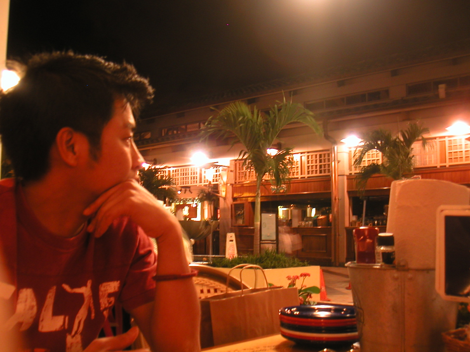 店の雰囲気も良いねえ。成清が男前に見えます。大音量で音楽がかかってるし、こちらもオープンエアーで風が気持ちいいんですわ。