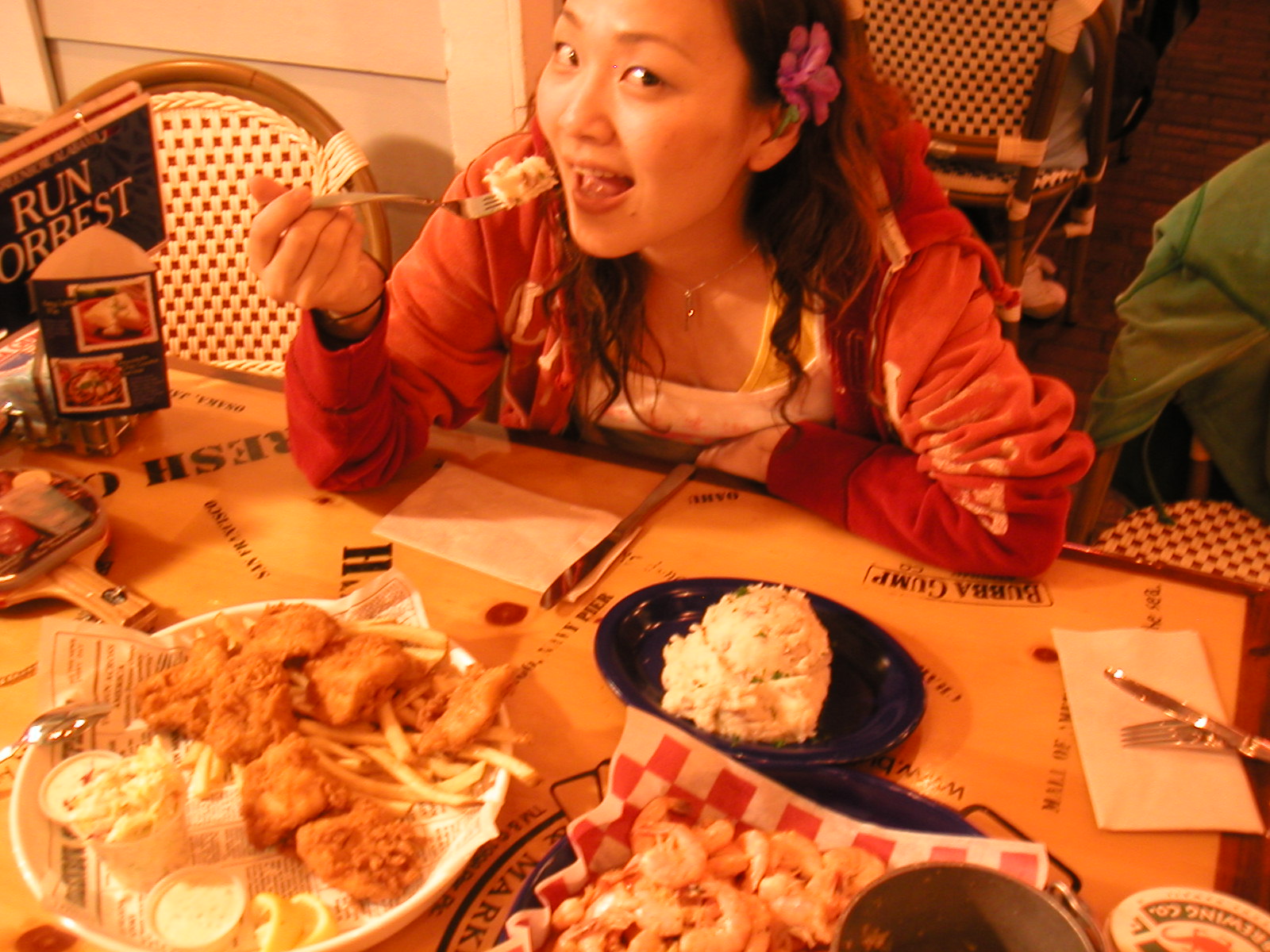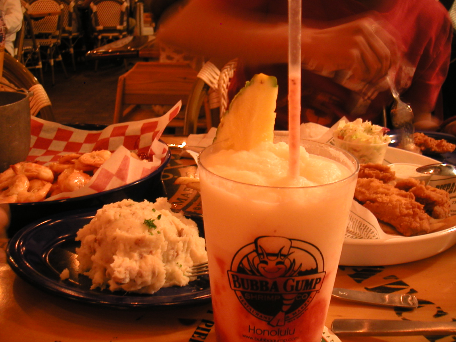 アラモアナセンター(ショッピングモール)の『ババガンプ・シュリンプ・カンパニー』というお店。ビールで蒸してガーリックで味付けしたエビが絶品らしいとの噂を聞きつけ、行ってみる。